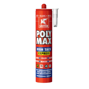 De Griffon Polymax Hightack Express is een oplosmiddelvrije montagekit op basis van MS-polymeer en heeft een extreem hoge aanvangshechting. Een bonuspunt voor deze hightack is de snelheid waarmee de sterkte opgebouwt wordt. Hierdoor is het perfect geschikt voor het monteren van zware materialen.