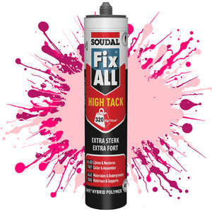 De Soudal Fix ALL High Tack is een professionele montagelijm en afdichtingskit op basis van SMX® Polymeer Technologie, speciaal ontwikkeld voor toepassingen waarbij een extreem hoge aanvangshechting vereist is. Deze witte lijmkit is geschikt voor constructieve verlijmingen, zelfs zonder mechanische ondersteuning, en biedt een duurzame, elastische verbinding op vrijwel alle materialen.